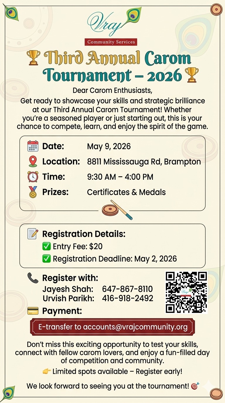 For Fees: e-transfer to accounts@vrajcommunity.org